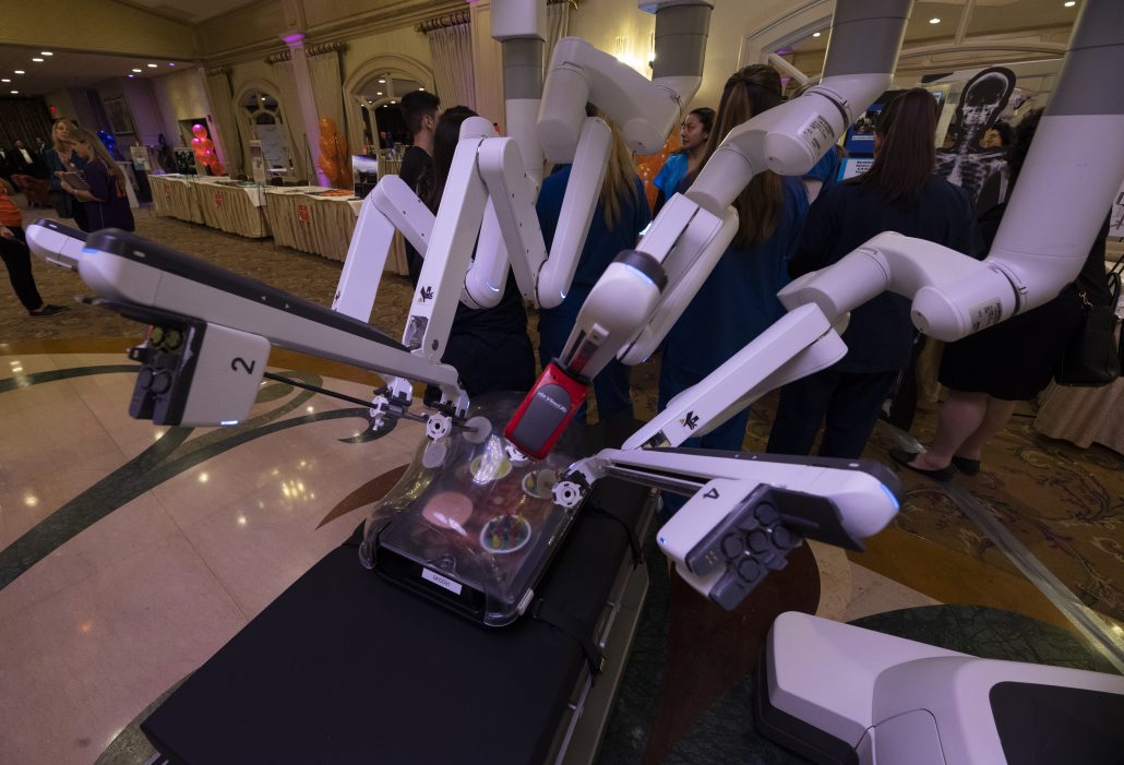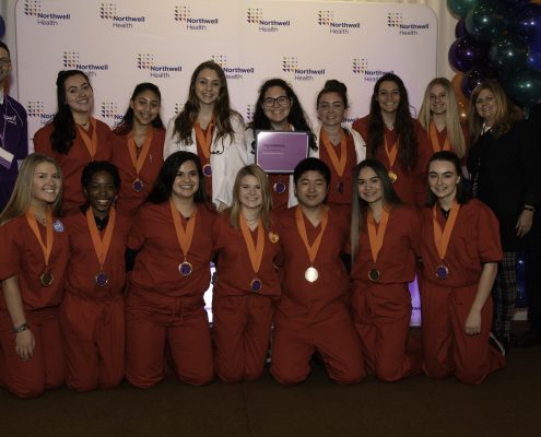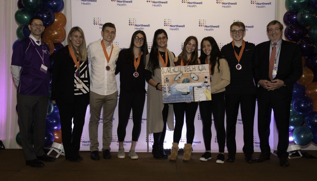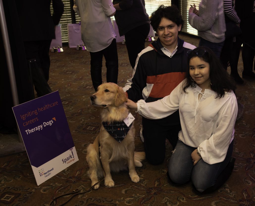 During the spring Awards Ceremony, students gave a two-minute presentation to Northwell’s senior executives and answered questions on one career they learned about during their site visit. Students were also able to test out their surgical skills with the da Vinci Xi Surgical System Robot, which is used in Northwell’s operating rooms for minimally invasive surgeries, play with therapy dogs and try their hand in a life-size Operation game.